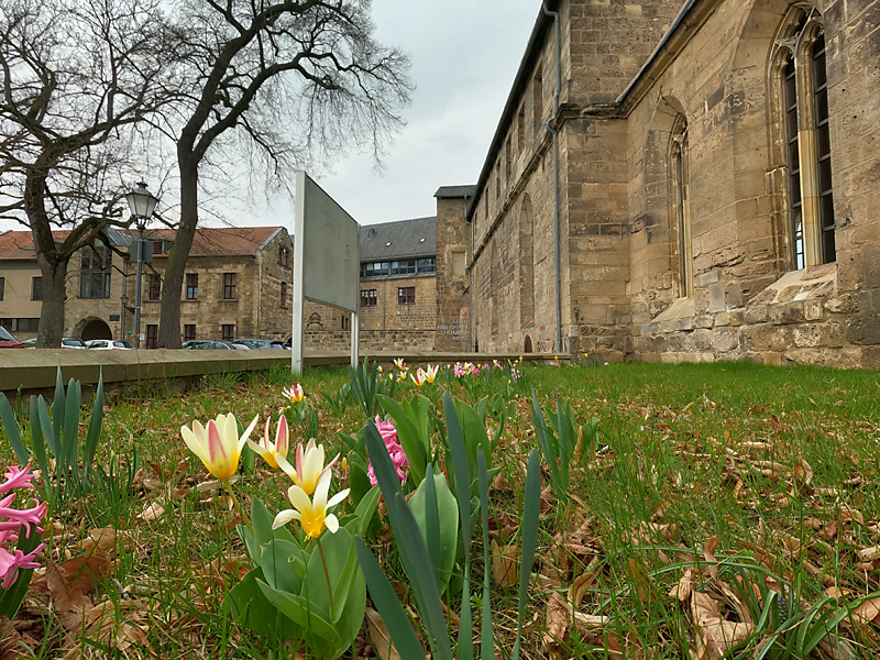 Die Frühblüher an der Stadtbibliothek sind wieder da